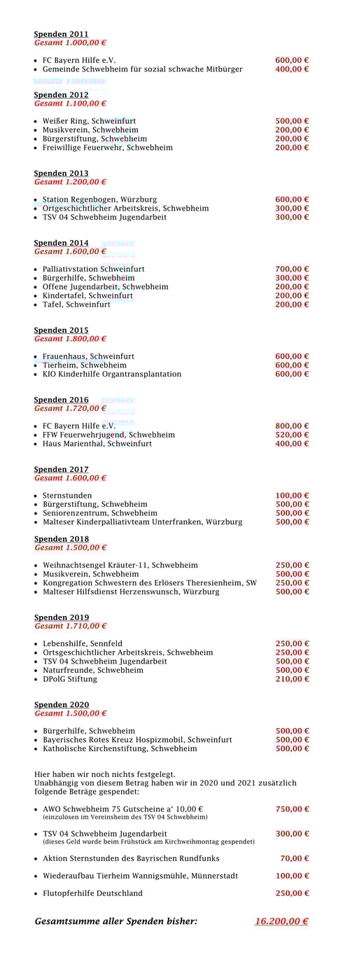 Spendenhistorie seit 2011
